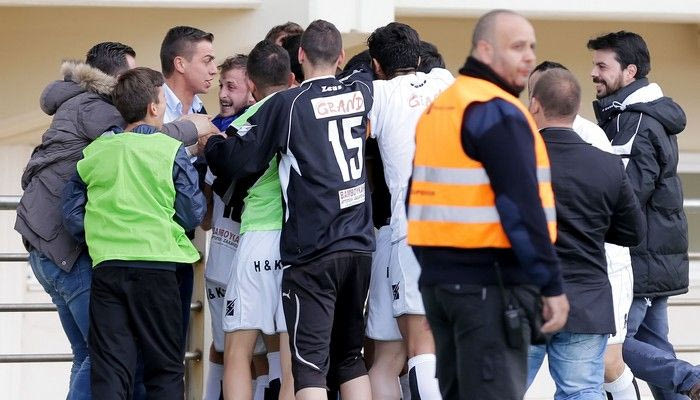 Οι γηπεδούχοι πανηγυρίζουν το γκολ του Σκουτέλη