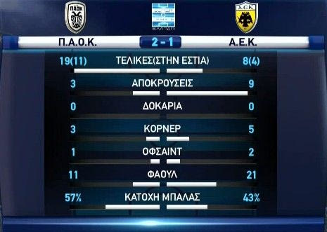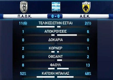 52%-48% η κατοχή της μπάλας υπέρ του ΠΑΟΚ.