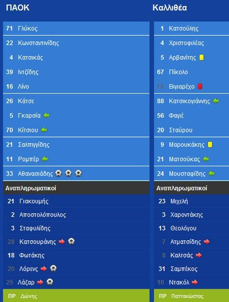 Ο ΠΑΟΚ μπήκε με ορμή στο γήπεδο και ξεκάθαρη διάθεση να καθαρίσει από νωρίς. Οι κεφαλιές του Αθανασιάδη και του Λάζαρ στο 6ο και 12ο λεπτό έλυσαν τα πόδια των “μελανόλευκων” που αφού πέτυχαν τον πρώτο σκοπό τους, έριξαν και το βάρος στην άμυνα, η οποία μέχρι τότε δεν ήταν στα… φόρτε της. Εξ ου κάποιες επικίνδυνες αντεπιθέσεις της Καλλιθέας.