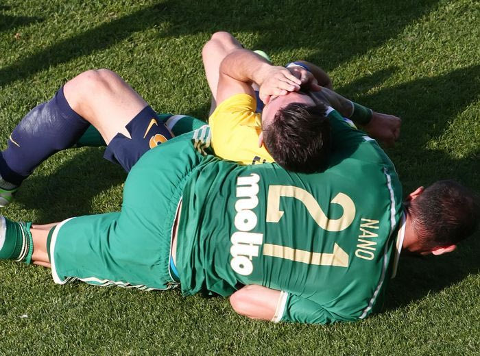 Αίφνης οι πάντες μαζεύτηκαν στο σημείο για να προστατεύσουν τους συμπαίκτες του αλλά η ένταση έσβησε με την παρέμβαση των πιο ψύχραιμων.