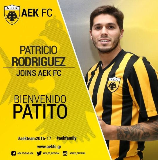 Ο Πατίτο Ροντρίγκες είναι -όπως αναμενόταν- το νέο μεταγραφικό απόκτημα της ΑΕΚ. Ο Αργεντινός άσος πέρασε το πρωί της Τετάρτης από ιατρικά τεστ, τα οποία ήταν επιτυχημένα, βρέθηκε στα γραφεία της ΠΑΕ στο ΟΑΚΑ, υπέγραψε και στη συνέχεια να ανακοινώθηκε από την Ένωση.