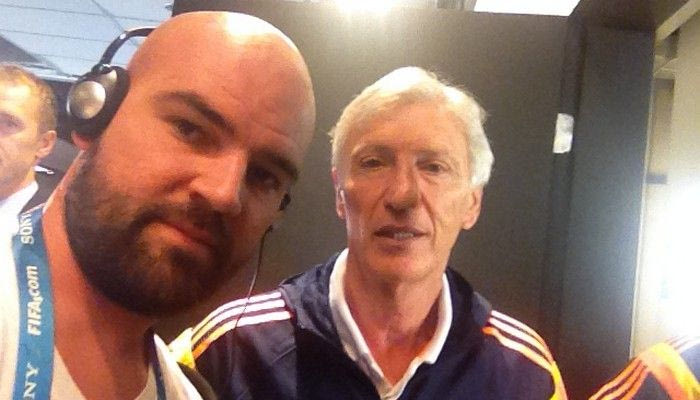 Όσον αφορά στην εθνική ομάδα της πατρίδας του τόνισε: “Οι αναμνήσεις με τον Μέσι είναι φανταστικές. Δεν πίστευα τα μάτια μου όταν ο Μέσι ήρθε στην Εθνική. Δεν είχα αμφιβολία για το τι θα κάνει αυτός ο νεαρός τότε. Είμαι περήφανος για το Λιονέλ. Δεν είχα ποτέ αμφιβολία ότι ήταν ανερχόμενο αστέρι τότε και το απέδειξε. Όλοι περιμένουμε ότι η Αργεντινή θα φτάσει στον Τελικό. Ελπίζω να μην χρειαστεί να αντιμετωπίσουμε την Αργεντινή. Αν είναι να παίξουμε με την Αργεντινή ας γίνει σε τελικό. Τώρα δεν σκέφτομαι την Αργεντινή και το Μέσι, μόνο την Ελλάδα. Ο Μέσι θα βοηθήσει πολύ την Αργεντινή εδώ στη Βραζιλία. Είμαι σίγουρος”.