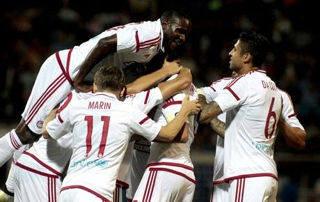 Οι παίκτες του Ολυμπιακού πανηγυρίζουν το γκολ τους