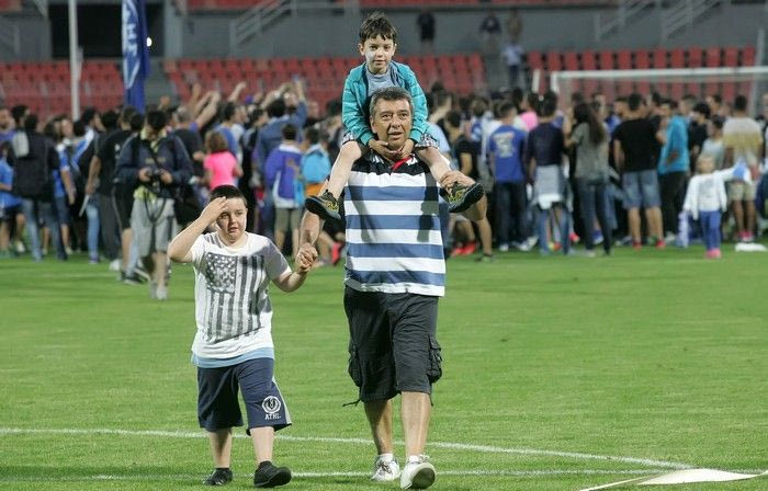 Ο Ηρακλής ηττήθηκε 1-0 από τον Απόλλωνα Σμύρνης στο Καυτανζόγλειο, ωστόσο αυτό δεν εμπόδισε παίκτες, προπονητές και τους περίπου 10.000 φιλάθλους να γιορτάσουν την επιστροφή της ομάδας στη Super League.