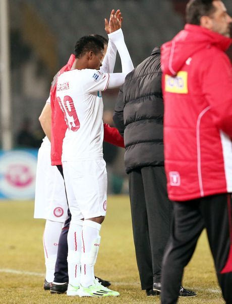 Μετά από 10 μήνες, ο Μάικλ Ολαϊτάν επέστρεψε στα γήπεδα στην αναμέτρηση του Ολυμπιακού με τον Τύρναβο και αποθεώθηκε από τους φίλους των "ερυθρολεύκων". Δείτε φωτογραφίες από την επιστροφή του 22χρονου.