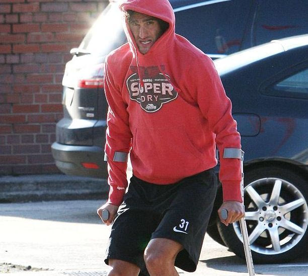 Aποκλειστικές φωτογραφίες της “Sun” δείχνουν τον Μαρουάν Φελαϊνί να περπατά με πατερίτσες και το πόδι του να βρίσκεται σε προστατευτική μπότα.