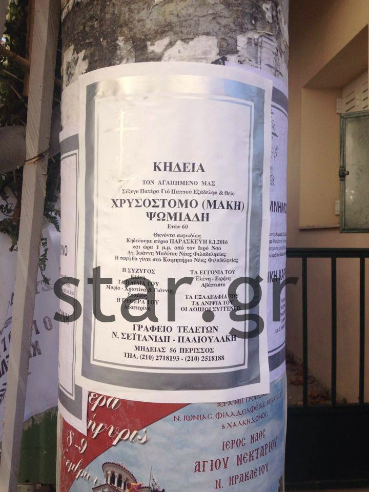 Η νεκρώσιμος ακολουθία πραγματοποιήθηκε στον Ιερό Ναό Αγίου Ιωάννη Μαδίτου στη Νέα Φιλαδέλφεια, καθώς εκεί λειτουργούσε ο πατέρας του Ψωμιάδη.