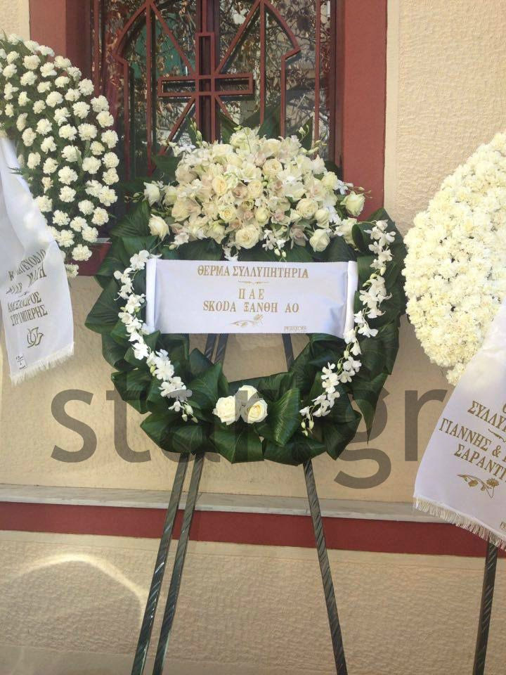 Στεφάνι στην κηδεία του που έγινε στο νεκροταφείο του Κόκκινου Μύλου έστειλαν τόσο η ΠΑΕ ΑΕΚ όσο και ο Δημήτρης Μελισσανίδης, η οικογένεια Αναστασίας Βαρδινογιάννη, η οικογένεια Γιαννακόπουλου, ο πρώην πρόεδρος της ΠΑΕ ΑΕΚ, Στράτος Γιδόπουλος, ο πρώην διευθύνων σύμβουλος της ΠΑΕ ΑΕΚ και πρώην εκτελεστικός διευθυντής της Super League, Πατρίκ Κομνηνός, καθώς επίσης η Καβάλα της οποίας υπήρξε μεγαλομέτοχος και η ΠΑΕ Ξάνθη.