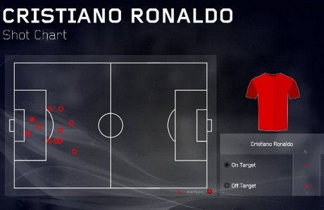 Ο Κριστιάνο Ρονάλντο τελείωσε 11 μπάλες, τις περισσότερες από κάθε άλλον ποδοσφαιριστή στην 1η αγωνιστική των ομίλων. Μόνο που η το καλό σημάδι του περιορίστηκε στην κεφαλιά του 85′ που δεν ήταν μάλιστα δυνατή και βρήκε σε ετοιμότητα τον γκολκίπερ Χάλνταρσον. Με 1/11 τελικές εμφανώς υστέρησε.