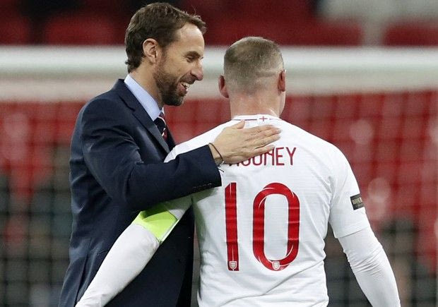 England's manager Gareth Southgate pats England's Wayne Rooney on the back after the international friendly soccer match between England and the United States, Rooney's 120th cap, at Wembley stadium, Thursday, Nov. 15, 2018. (AP Photo/Alastair Grant) AP Photo/Alastair Grant