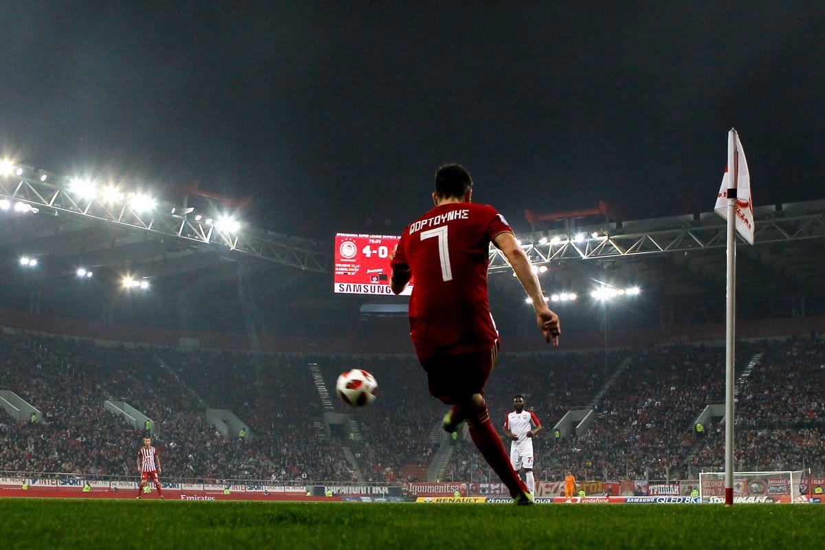 Ο Κώστας Φορτούνης του Ολυμπιακού σε στιγμιότυπο του αγώνα με την Ξάνθη για τη Super League 2018-2019 στο 'Γεώργιος Καραϊσκάκης', Κυριακή 14 Απριλίου 2019