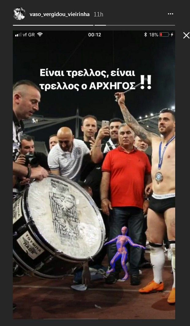“Είναι τρελός είναι τρελός ο αρχηγός”, ήταν το μήνυμα της Βάσως Βεργίδου στη φωτογραφία που ανέβασε στο Instastory, με τον Πορτογάλο διεθνή μπακ-χαφ να έχει μείνει μόνο με το… σλιπάκι στους πανηγυρισμούς ενώ το δεύτερο ποστάρισμά της ήταν ακόμα πιο ερωτικό!