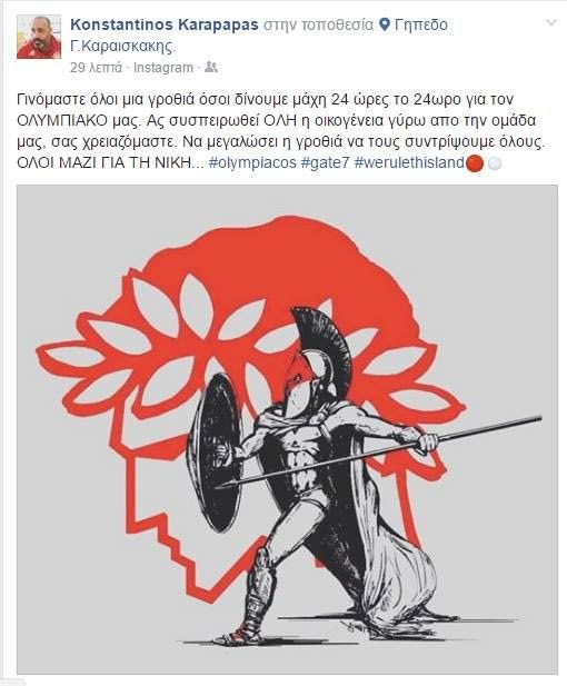Ο διευθυντής επικοινωνίας της ΠΑΕ Ολυμπιακός έγραψε χαρακτηριστικά στο facebook τα ακόλουθα.