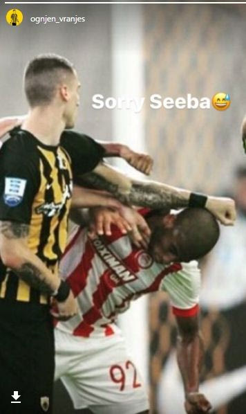 Ο Όγκνιεν Βράνιες ανέβασε ένα ακόμα... προκλητικό ποστάρισμα στο λογαριασμό του στο Instagram, όπου φαίνεται ο Σεμπά να δέχεται χτύπημα στο πρόσωπο στο ντέρμπι ΑΕΚ - Ολυμπιακός. Το συνόδευσε με... φαρμακερή ατάκα (φωτογραφία).