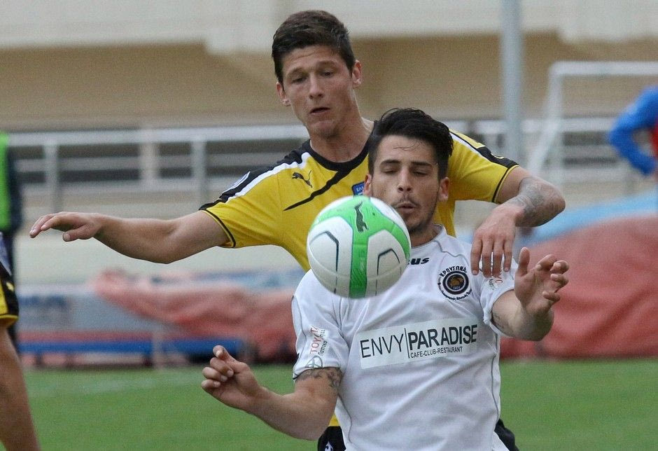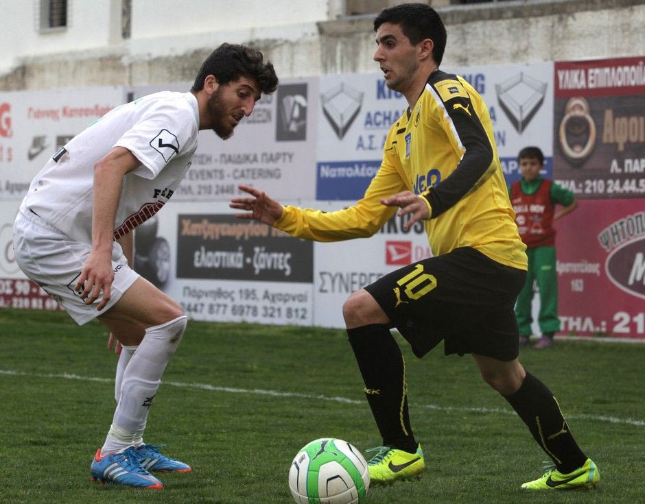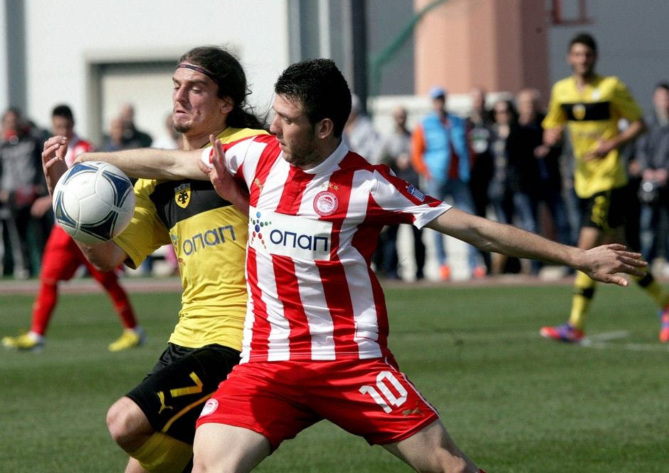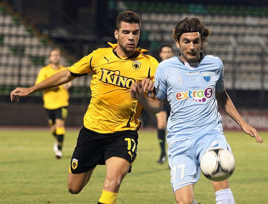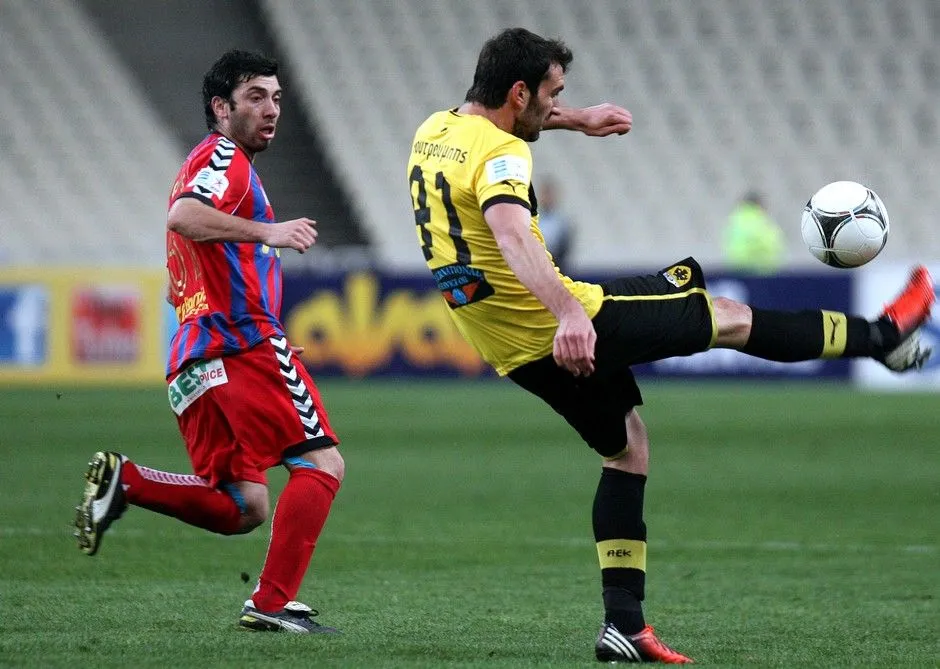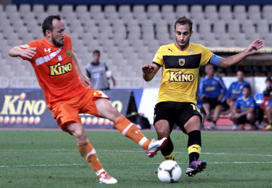 Ο Γιώργος Κουτρουμπής σε μια μονομαχία με τον Νίκο Γεωργέα της Βέροιας, τη σεζόν 2012-13 ACTION IMAGES PRESS AGENCY