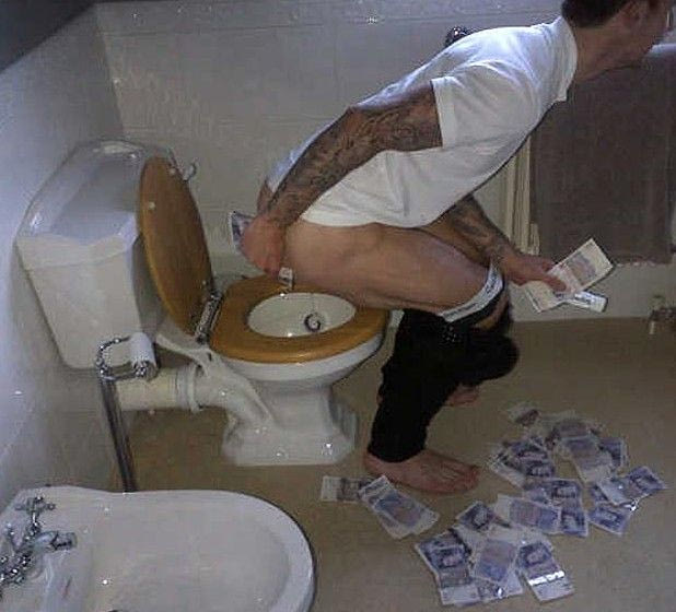 Ο Λίαμ Ρίτζγουελ της Γουέστ Μπρομ που κερδίζει περίπου 25.000 ευρώ την εβδομάδα, απαθανατίστηκε να σκουπίζεται στην τουαλέτα με χαρτονομίσματα των 20 λιρών, γεγονός που προκάλεσε σάλο στη Βρετανία.