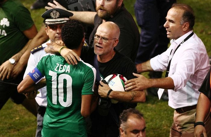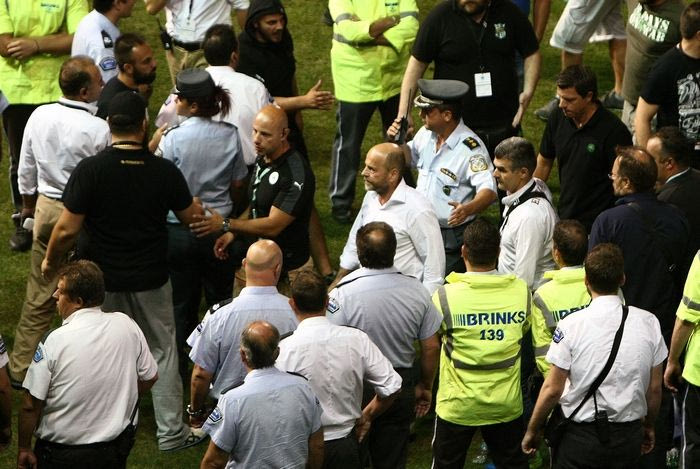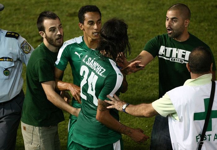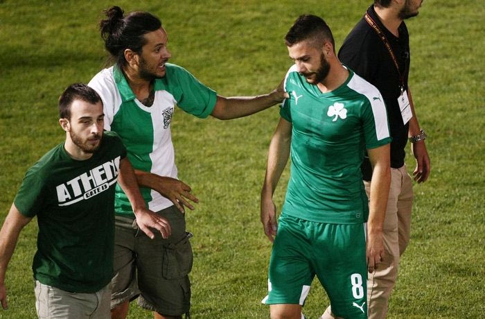 Ο αποκλεισμός του Παναθηναϊκού στα πλέι οφ του Europa League από την Καμπάλα, προκάλεσε ένταση μετά τη λήξη του αγώνα, καθώς περίπου 25 οπαδοί του "τριφυλλιού" εισέβαλαν στον αγωνιστικό χώρο και προπηλάκισαν τους ποδοσφαιριστές.