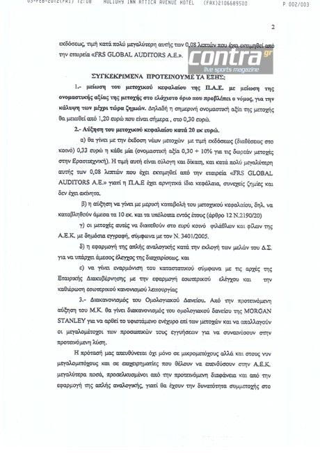 Επισημαίνουμε ότι, η πρόταση μας αυτή είναι ανεξάρτητη της απαιτήσεως καλύψεως από τους μέχρι τώρα μετόχους των ζημιών που προκάλεσαν στην Π.Α.Ε. και θα πρέπει, με οποιονδήποτε τρόπο, να αποκαταστήσουν.”