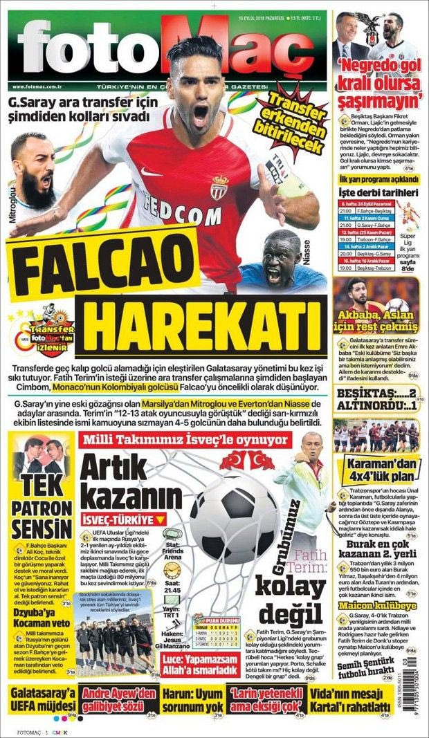 Το μεγάλο στοίχημα για τον Φατίχ Τερίμ ακούει στο όνομα Φαλκάο, που αναγεννήθηκε τα τελευταία χρόνια στην Μονακό του Ζαρντίμ, ενώ σύμφωνα με την εφημερίδα “η Γαλατάσαραϊ ρίχνει ματιές και σε δύο ακόμα παίκτες: στον Κώστα Μήτρογλου της Μαρσέιγ και στον Νιάς της Έβερτον”.