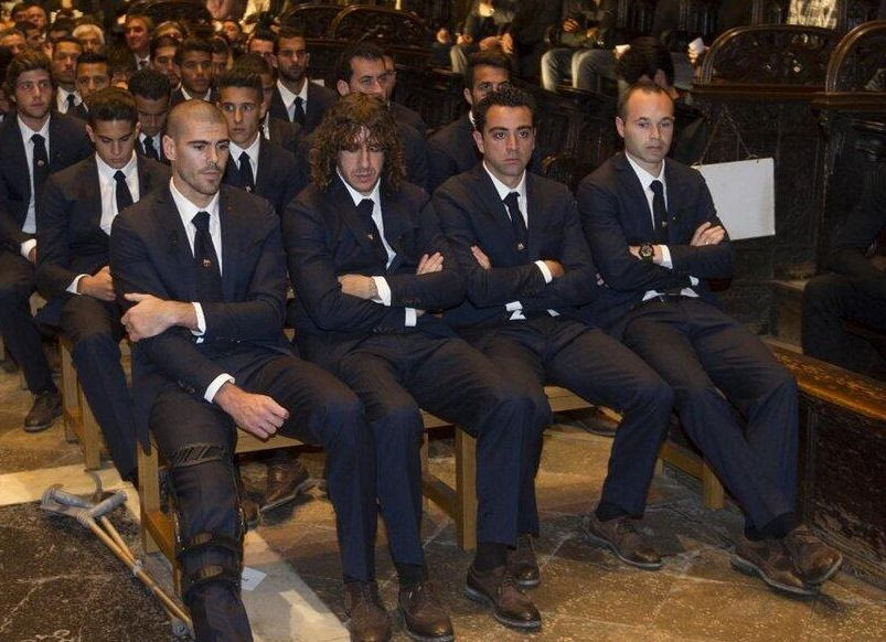 Οι τέσσερις αρχηγοί Κάρλες Πουγιόλ, Τσάβι, Αντρές Ινιέστα και Βικτόρ Βαλδές κάθονταν στο ίδιο στασίδι, ενώ πίσω τους είχαν πάρει θέση όλοι οι υπόλοιποι ποδοσφαιριστές. Πουγιόλ και Τσάβι, μάλιστα, λύγισαν μετά τον επικήδειο των παιδιών του Τίτο Βιλανόβα…