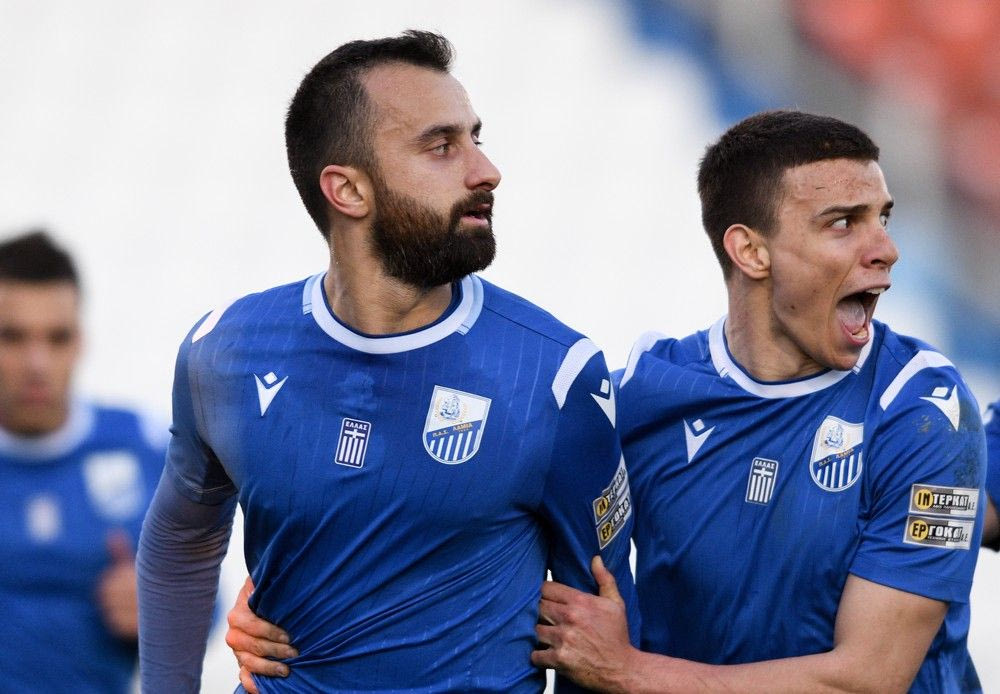 Ο Μπατσάνα Αραμπούλι πανηγυρίζει ένα από τα γκολ του με τη Λαμία Eurokinissi Sports