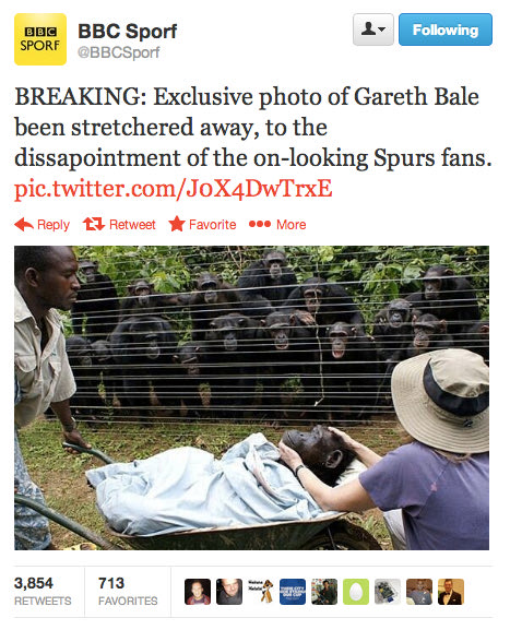 Ο καλύτερος παίκτης της Τότεναμ τραυματίστηκε στον αστράγαλο κατά τη διάρκεια του πρώτου αγώνα με την Βασιλεία για την προημιτελική φάση του Europa League, ωστόσο αυτό φαίνεται πως δεν συγκίνησε οπαδούς άλλων ομάδων ή λογαριασμούς παρωδία όπως το BBC Sporf.