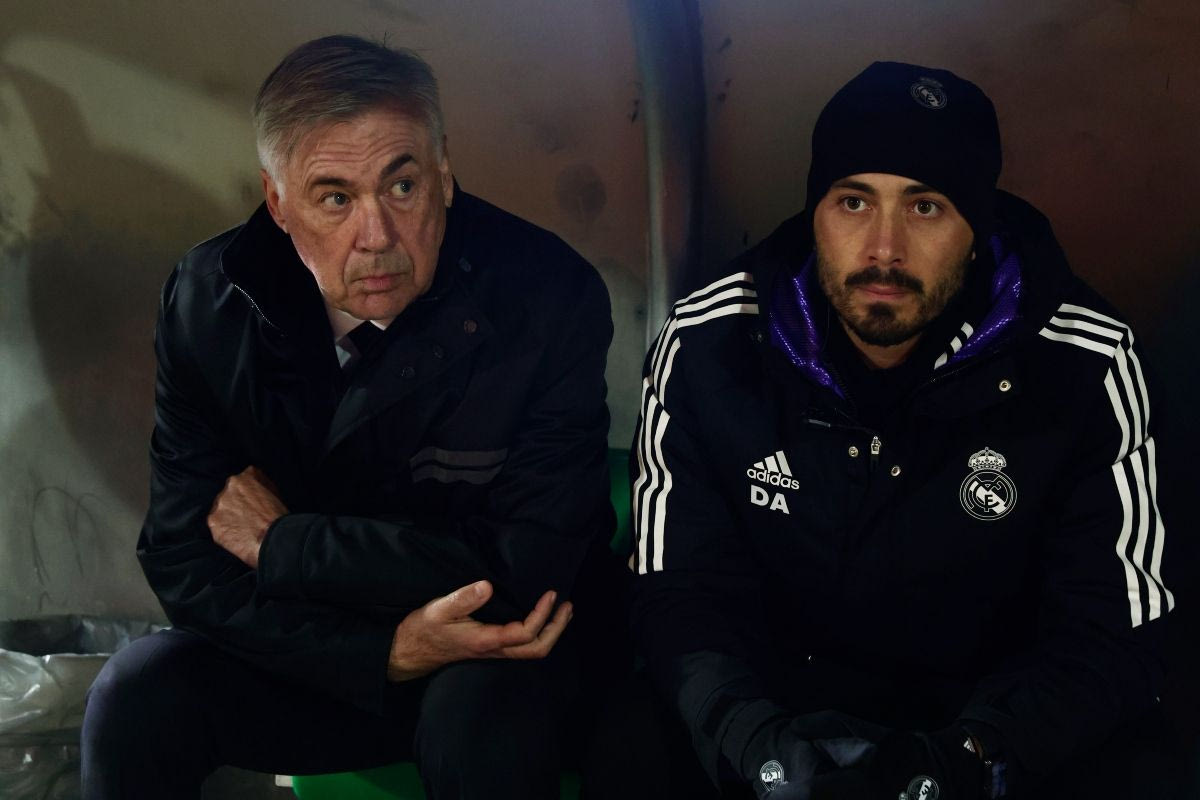 Ο Κάρλο Αντσελότι μαζί με τον γιο του Νταβίντε στον πάγκο της Ρεάλ Μαδρίτης AP