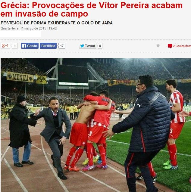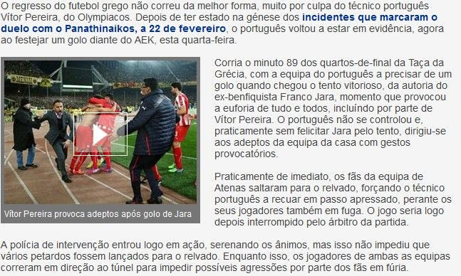Ο Βίτορ Περέιρα προκάλεσε την οργή των οπαδών της ΑΕΚ με προκλητικές χειρονομίες, σύμφωνα με την πορτογαλική εφημερίδα Record.