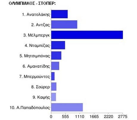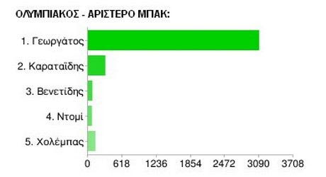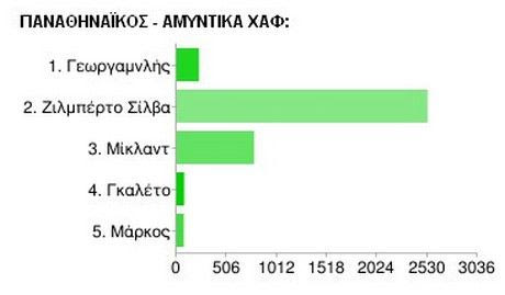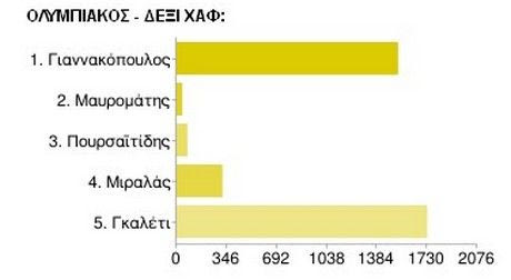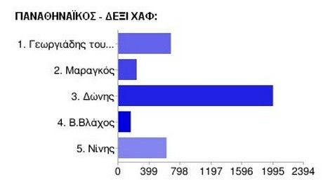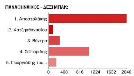 Σε μία επεξήγηση της “ερυθρόλευκης” ενδεκάδας που εσείς επιλέξατε, ο Νικοπολίδης θα είναι στο τέρμα, ο Γεωργάτος αριστερό μπακ και ο Τοροσίδης δεξί μπακ, Μέλμπεργκ και Α.Παπαδόπουλος τα δύο στόπερ, Καρεμπέ το αμυντικό χαφ, Ριβάλντο επιτελικός, ο Τζόρτζεβιτς στα αριστερά της μεσαίας γραμμής και ο Γκαλέτι στα δεξιά και επιθετικό δίδυμο οι Τζιοβάνι-Αναστόπουλος.