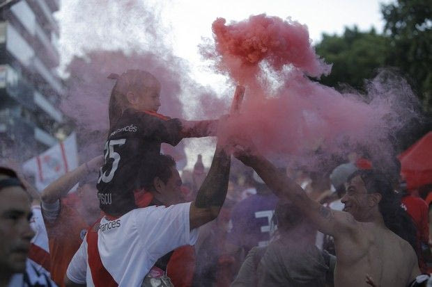 Όλα ξεκίνησαν από νωρίς με τους οπαδούς της Ρίβερ να έρχονται σε συγκρούσεις με την αστυνομία σχεδόν σε κάθε σημείο της πόλης γύρω από το Μονουμεντάλ. Πολλοί μπήκαν στο γήπεδο χωρίς εισιτήριο. Παράλληλα ένα βίντεο έκανε τον γύρω του κόσμου με μία γυναίκα να ζώνει κοριτσάκι με φωτοβολίδες για να τις περάσει μέσα στο γήπεδο.