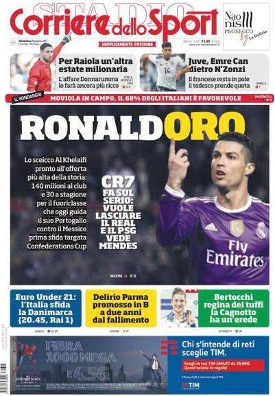 Σύμφωνα με την Corriere dello Sport η Παρί Σεν Ζερμέν έχει αποφασίσει να κινηθεί για την απόκτηση του Πορτογάλου άσου, προσφέροντας στην Ρεάλ 140.000.000€ και στον ίδιο τον παίκτη 30.000.000€ το χρόνο καθαρά!