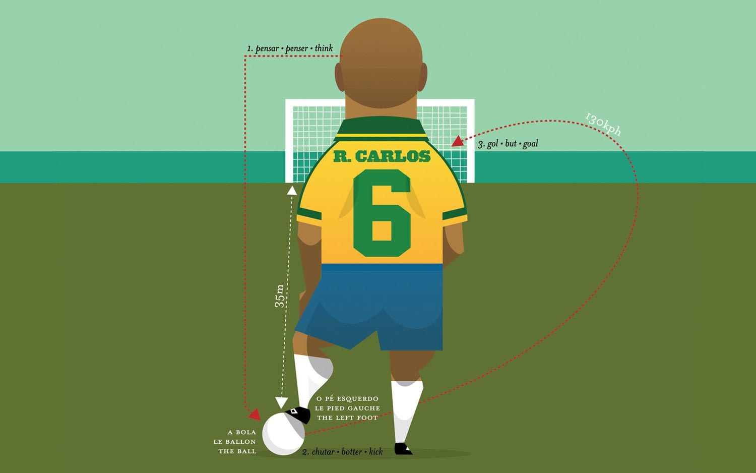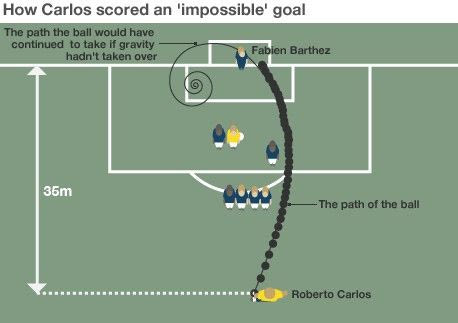 Το διάσημο φάουλ του Ρομπέρτο Κάρλος, έμεινε στην ιστορία για το φάλτσο που πήρε η μπάλα πριν καταλήξει στα δίχτυα. Από απόσταση 35 μέτρων, ο Βραζιλιάνος πήρε φόρα και σούταρε βάζοντας εξωτερικό φάλτσο στη μπάλα. Βέβαια, η κλίση που πήρε αυτή ήταν τόσο μεγάλη, που ακόμα και o φωτογράφος που βρισκόταν δίπλα από την εστία, έσκυψε γιατί νόμιζε πως θα πάει επάνω του.
