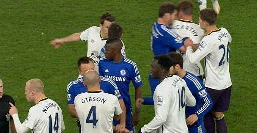 Λίγο πριν ο Γουίλιαν πετύχει το γκολ της νίκης στα τελευταία λεπτά του αγώνα της Τσέλσι με την Έβερτον (1-0), τα αίματα άναψαν με αποτέλεσμα να δημιουργηθεί μια σύρραξη ανάμεσα στους παίκτες των δύο ομάδων. Τότε ο Μπράνισλαβ Ιβάνοβιτς έκανε ένα κεφαλοκλείδωμα στον Τζέιμς Μακάρθι, ενώ στη συνέχεια έβαλε το κεφάλι του στον ώμο του, με πολλούς να αναρωτιούνται αν τελικά τον δάγκωσε ή όχι.
