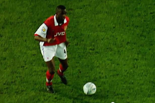 Ο Πατρίκ Βιεϊρά έχει την μπάλα στο χώρο του κέντρου και προσπαθεί να κάνει την παράλληλη πάσα, όμως ο Ράιαν Γκιγκς κλέβει.