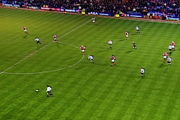 O Σκόουλς έχει πάρει θέση μέσα στην περιοχή, όμως ο Γκιγκς δεν βλέπει τίποτε άλλο παρά μόνο το τέρμα. Ο Σίμαν έχει καλεί θέση και περιμένει τον Ουαλό.