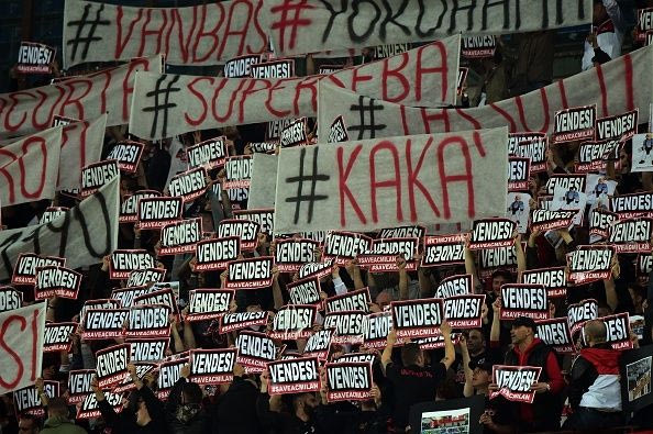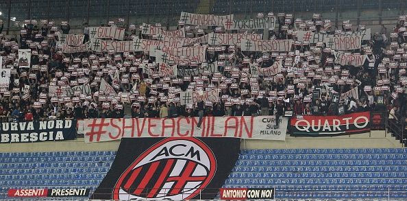 Στην αναμέτρηση με τη Σαμπτόρια οι οπαδοί της Μίλαν ύψωσαν αμέτρητα πανό με ονόματα παικτών που τίμησαν τη φανέλα της ομάδας στο πέρασμα των χρόνων. Ένα άλλο έγραφε “προς πώληση” κι ένα άλλο, το μεγαλύτερο όλων, έγραφε “Save Milan”.