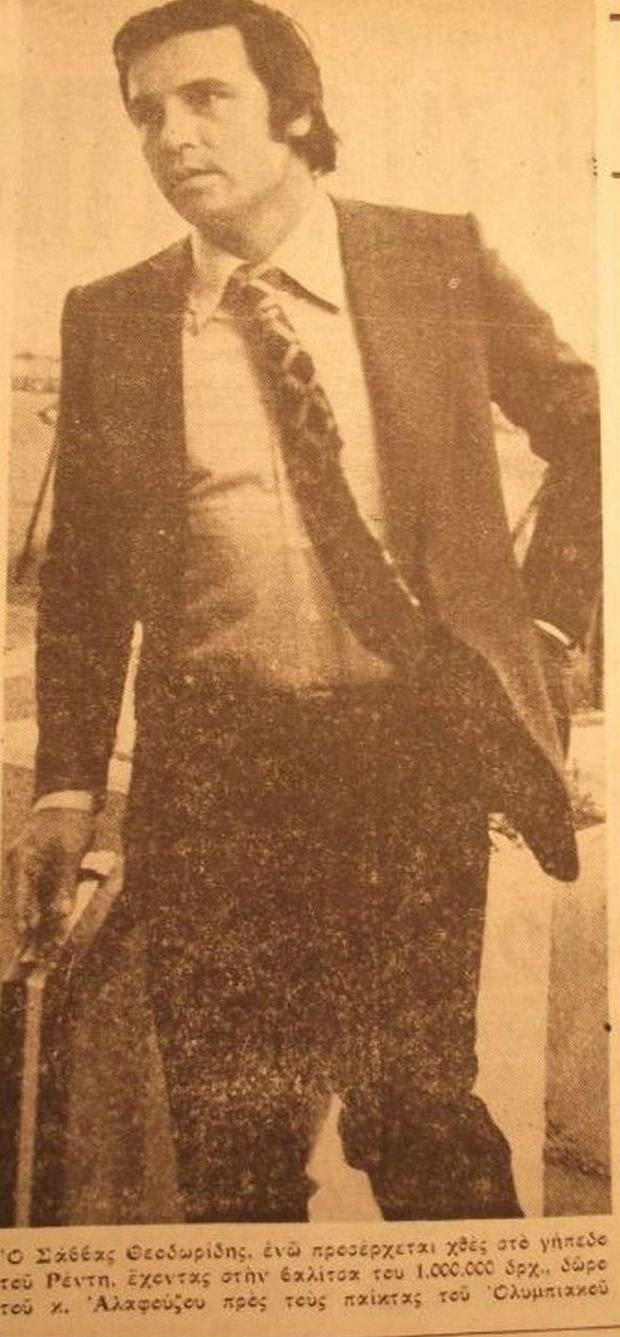 Για τον Σάββα Θεοδωρίδη, πρώτος μου’ χε μιλήσει ο πατέρας μου. Τον θαύμαζε γιατί ήταν μέλος της μεγάλης ομάδας του Ολυμπιακού στη δεκαετία του 50, με τα έξι σερί πρωταθλήματα (ο Σάββας πήρε τα πέντε, ενώ στο κοντέρ έγραψε και άλλα τόσα Κύπελλα).