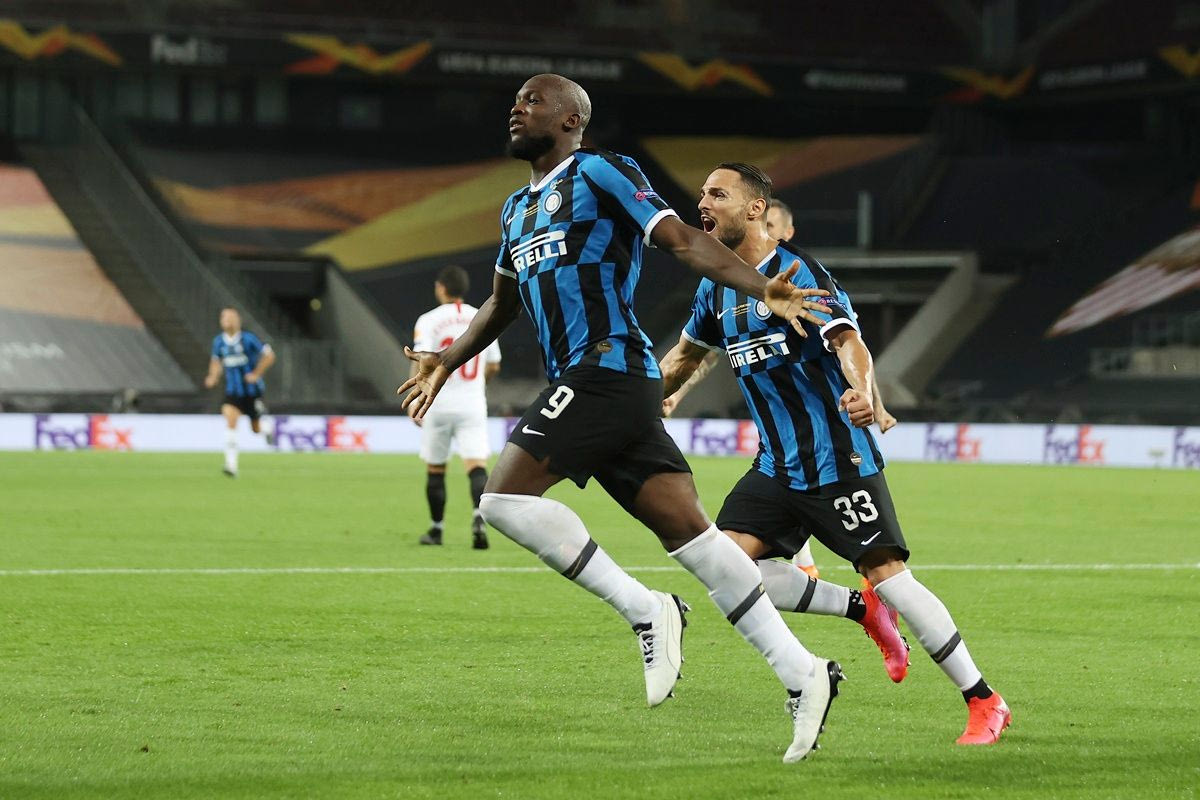 Ο Ρομέλου Λουκάκου της Ίντερ πανηγυρίζει γκολ που σημείωσε κόντρα στη Σεβίλλη για τον τελικό του Europa League 2019-2020 στο 'Ράιν Ένεργκι Στάντιον' της Κολονίας | Παρασκευή 21 Αυγούστου 2020 AP Photo/Lars Baron