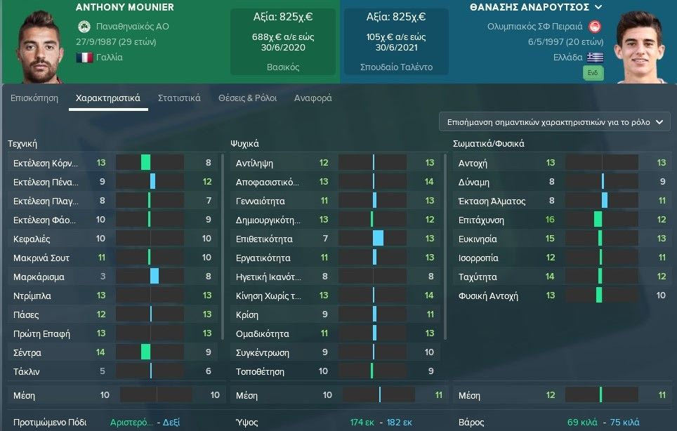 Μικρές διαφορές στα περισσότερα χαρακτηριστικά, με εκείνο που ξεχωρίζει είναι το +5 του Μουνιέ στις σέντρες και το +4 στην επιτάχυνση.