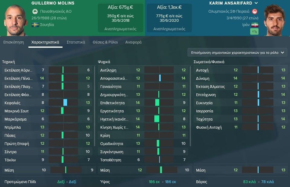 Στη συγκεκριμένη μονομαχία, ο Μολίνς σε μέσο όρο είναι στο +1 και 2 σε επίπεδο τεχνικών και ψυχικών χαρακτηριστικών, με τον Ανσαριφάρντ να “απαντά” στα σωματικά και φυσικά χαρακτηριστικά με +1.