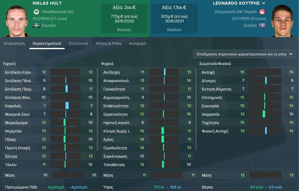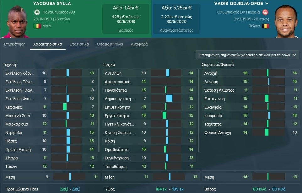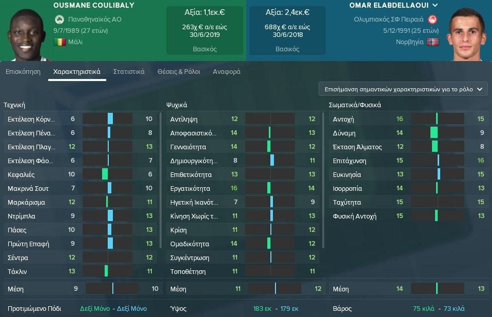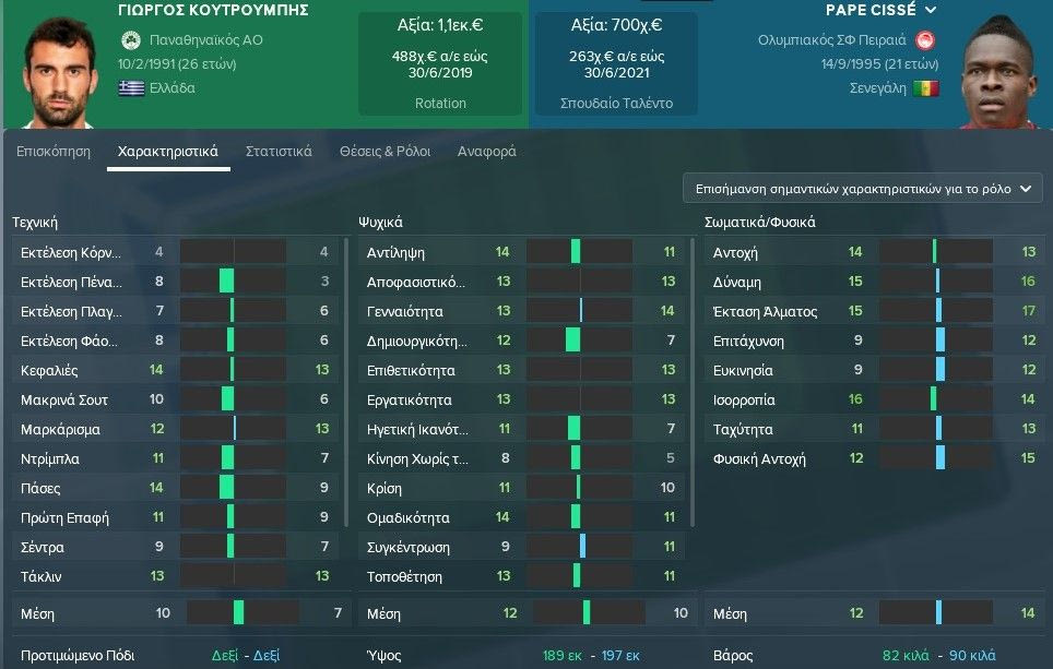 Αν υπάρχει ένα κοινό στοιχείο που καταγράφει κανείς μέσω των χαρακτηριστικώντων δυο παικτών είναι η “μάχη” στα τεχνικά χαρακτηριστικά εκεί που αμφότεροι είναι στα χαμηλά, και η αντίστοιχη “μάχη” στα σωματικά/φυσικά χαρακτηριστικά, εκεί που αμφότεροι έχουν από τους υψηλότερους μέσους όρους του πρωταθλήματος.