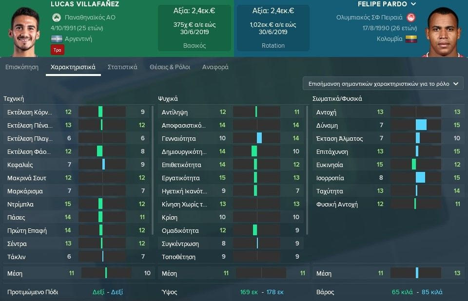 Σε 13 κατηγορίες χαρακτηριστικών στο τεχνικό και το ψυχικό κομμάτι, ο Βιγιαφάνιες έχει προβάδισμα με τον Πάρντο να “απαντά” σε δύναμη, ισορροπία και ταχύτητα.