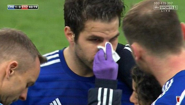 Ο Σεσκ Φάμπρεγκας ανέβασε φωτογραφία στο instagram που απεικονίζει το χτύπημα που κληρονόμησε στην μύτη, στον αγώνα πρωταθλήματος με την Στόουκ.