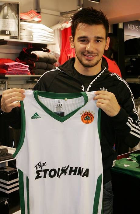 Μετά τα “πηγαδάκια” και τα αυτόγραφα ο Νίνης και ο Λέτο φωτογραφήθηκαν και με την εξάστερη φανέλα του μπάσκετ.