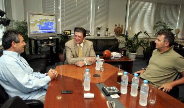 Στη συζήτηση μπήκαν πάρα πολλά θέματα. Το γήπεδο του Ηρακλή, η καινούρια τους προσπάθεια. Είναι φανερό ότι, έχουν διάθεση, έχουν αγωνία και εμείς σε αυτή την προσπάθεια θα είμαστε σταθεροί αρωγοί, γιατί ακριβώς πιστεύουμε ότι ο σχεδιασμός τους ταιριάζει με τον ευρύτερο σχεδιασμό της Πολιτείας, για νέα πρόσωπα και νέες δυνάμεις στο χώρο του αθλητισμού και ιδιαίτερα του επαγγελματικού. Ξέρετε, το ποδόσφαιρο έχει ανάγκη από νέο αίμα, όχι μόνο στον αθλητικό χώρο, αλλά κυρίως σε αυτούς που διοικούν και νομίζω ότι στο πρόσωπο του Αντώνη βρίσκουμε έναν τέτοιο αρωγό.