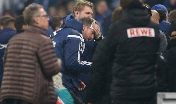 Συγκεκριμένα στην αναμέτρηση της Σάλκε με την Κολωνία το Σάββατο, ο βοηθός του Ντι Ματέο, Σβεν Χούμπσερ, δέχτηκε μεταλλικό αντικείμενο στο κεφάλι, το οποίο του προκάλεσε σοβαρό τραύμα.