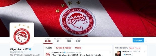 Είναι χαρακτηριστικό πως την ιστοσελίδα της ΠΑΕ Ολυμπιακός στο Facebook την ακολουθούν 870.000 άνθρωποι, με τον ΠΑΟΚ να καταλαμβάνει τη 2η θέση στη σχετική λίστα με 473.5000 “πιστούς”, τον Παναθηναϊκό να συμπληρώνει το πόντιουμ με 302.000 κόσμο και την ΑΕΚ να ακολουθεί με σχεδόν 230.000 φανς να ακολουθούν τη σελίδα της στο Facebook.
