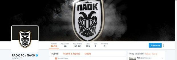 Όσον αφορά στο Twitter, ο ΠΑΟΚ ήταν ο πρώτος που το “εγκαινίασε” από τις τέσσερις αυτές παραδοσιακές δυνάμεις του ελληνικού ποδοσφαίρου, το 2009, δύο χρόνια αργότερα αποφάσισαν να παίξουν… μπάλα Ολυμπιακός και ΑΕΚ ενώ ο Παναθηναϊκός άργησε αλλά τελικά δημιούργησε και αυτός τη δική του σελίδα το 2015. Οι Πειραιώτες έχουν ήδη 62.000 άτομα ως κοινό, ο ΠΑΟΚ που είναι ο πιο δραστήριος από όλους σε αυτό το κομμάτι (έχει τα περισσότερα ποσταρίσματα, με τους ανθρώπους που διαχειρίζονται την ιστοσελίδα να έχουν ανοίξει συχνά διάλογο και με ξένους συλλόγους, βαδίζοντας σε ευρωπαϊκά πρότυπα) ακολουθεί με 35.400 followers, η ΑΕΚ έχει γύρω στους 22.000 ενώ ο Παναθηναϊκός έχει μείνει λίγο πίσω στο συγκεκριμένο μέσο επικοινωνίας κάτι που μαρτυρούν οι κάτω από 8.000 ακόλουθοί του.