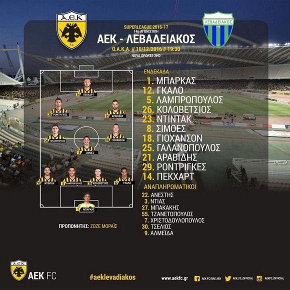 Ο Ζοζέ Μοράις έκανε την έκπληξη, δίνοντας φανέλα βασικού στον Τόμας Πέκχαρτ αντί του Ούγκο Αλμέιδα στην αναμέτρηση της ΑΕΚ με τον Λεβαδειακό για την 14η αγωνιστική της Super League.