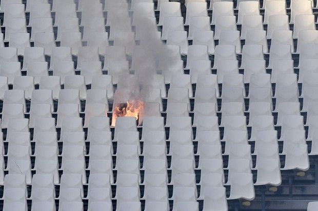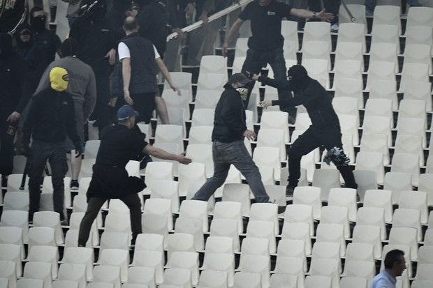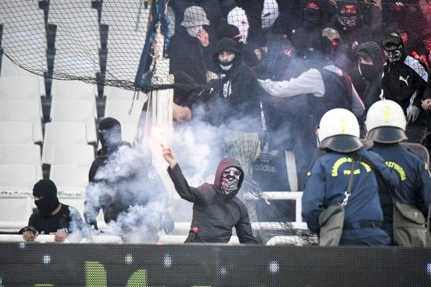 Τα πολυδιαφημισμένα δρακόντεια μέτρα ασφαλείας αποδείχτηκαν ανεπαρκή σε ένα ακόμα μεγάλο ελληνικό ντέρμπι, με τους οπαδούς της ΑΕΚ και του ΠΑΟΚ να περνούν ανενόχλητοι ό,τι ήθελαν στις εξέδρες του Ολυμπιακού Σταδίου και να στήνουν ένα πολεμικό σκηνικό στον περιβάλλοντα χώρο του γηπέδου (PHOTOS).